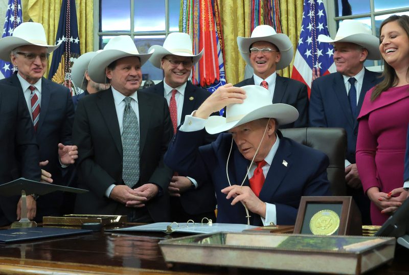 On behalf of the team, Eruzione presented Trump with a replica of the cowboy hat that the team wore at the opening ceremonies in Lake Placid.