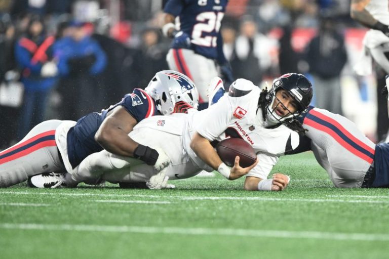 There were plenty of dropbacks against Mike Vrabel’s defense in which Stroud had nowhere to throw and nobody to throw to. The conditions were not conducive to the clean delivery of the football, although the dry setting of Monday’s night game didn’t prevent him from putting the ball on the ground five times (he recovered three of his fumbles). But the pick-six he surrendered, when K’Lavon Chaisson chased Stroud down on a partially broken play, could have been avoided by throwing the ball away or taking a sack.
