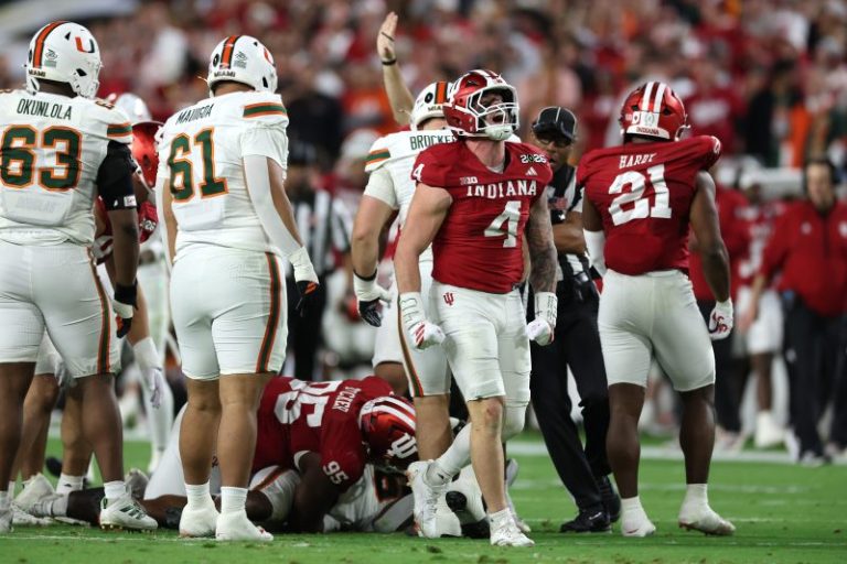 IU would have a major answer behind a rejuvenated Mendoza. He threw for 37 yards on the next drive, including a key 19-yard completion to Becker on fourth-and-5 from the Miami 37, and then ran it in from 12 yards out on fourth-and-4 from the 12 to put Indiana ahead 24-14 with 9:18 left.